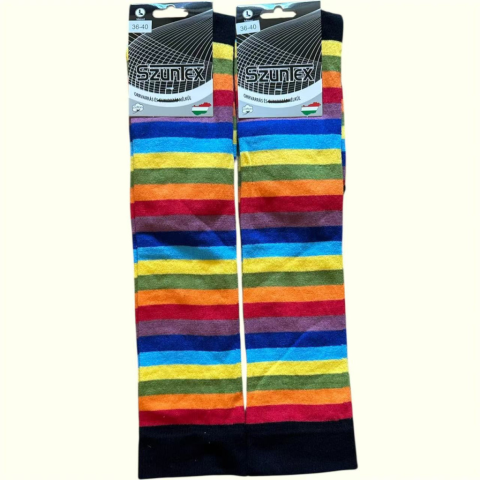 1 kép SZUNTEX Színes Csíkos Térdzokni – Szivárvány Mintás 1 par