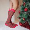 Szuntex piros-sötétzöld csíkos vékony térdzokni!