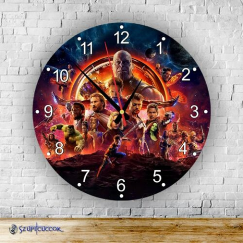 1 kép Szupicuccok Bosszúállók karakterek logó kör alakú üveg falióra