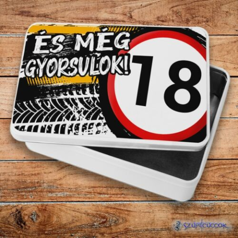 1 kép    Szupicuccok Még gyorsulok - Születésnapos fém szendvicsdoboz (tároló doboz)