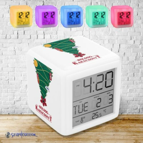 1 kép Szupicuccok Stranger Things - Boldog Karácsonyt színváltós világító ébresztő óra