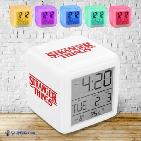 1 kép Szupicuccok Stranger Things fehér logo színváltós világító ébresztő óra
