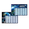 Nagyméretű órarend galaxy föld mintával, fiúknak. Kétoldalas - A és B hetes, 0-8 óráig. Kétoldalas, a képen látható két mintával. Mérete: 23,5x16,5 cm.