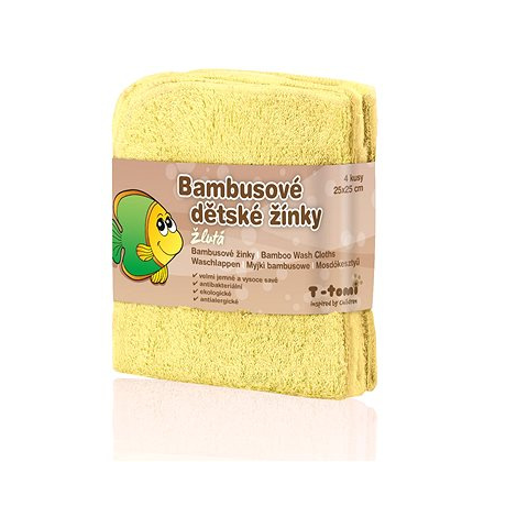 Mosdókesztyű - gyerekeknek, anyaga bambusz, anyag típusa frottír, mérete 25 × 25 cm, 4 darabos csomag Ezen T-tomi Mosdókendő yellow mosdókesztyű legfontosabb paraméterei A gyengéd tapintású T-Tomi babáknak készült mosdókendő kicsit élvezetesebbé teszi a kicsik fürdetését Kellemes bambusz anyagból gyár