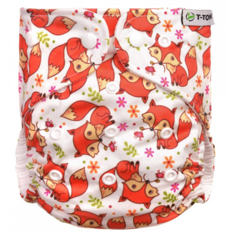 1 kép T-tomi mosható pelenka AIO patenttal + 2 db bambusz betét - rókák