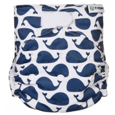 1 kép T-tomi mosható pelenka AIO tépőzárral + 2 db bambusz betét - bálnák
