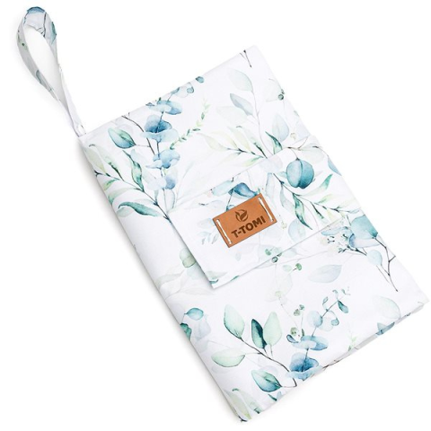 Pelenkázó táska - tok, belső tagolás és akasztó szíj, záródás módja tépőzárral, rögzítés a babakocsira patentokkal, kézben hordható, belső zseb, összesen 8 zseb, anyaga poliészter, többszínű kivitel, természeti motívum, méretei 21 × 28 cm (szé × h) A T-TOMI Eucalyptuspelenkázótáska ideális kiegészítő, és rengeteg helyet is biztosít.