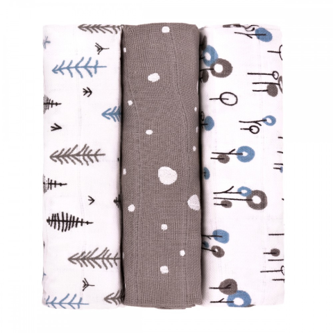1 kép T-tomi prémium minőségű tetra textil pelenka, 70x70cm, szürke fák, 3db