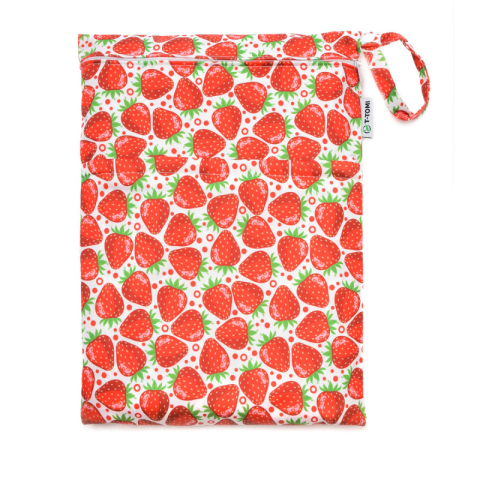 1 kép T-tomi vízálló PUL pelenkatároló zsák két zsebbel, Eprek