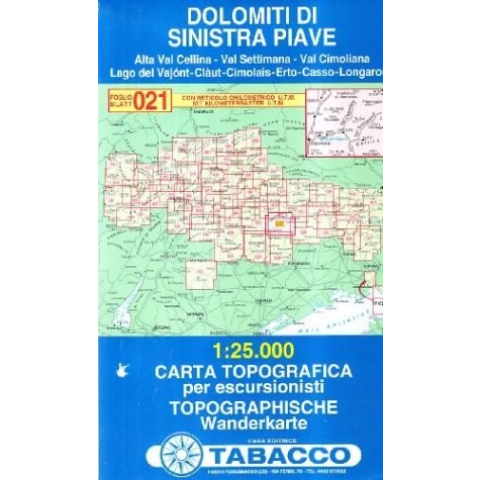 Tabacco 021. Dolomiti di Sinistra Piave turista térkép Tabacco 1: 25 000