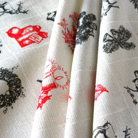 Ezüst lurexes, piros-szürke mintás, magas pamuttartalmú, karácsonyi, ünnepi terítő, dekorációs anyag. 140 cm széles. Legkisebb rendelési mennyiség 1 méter. 140 cm széles, ezüst lurexes, finoman csillogó, karácsonyi, ünnepi mintás, dekorációs, terítő a