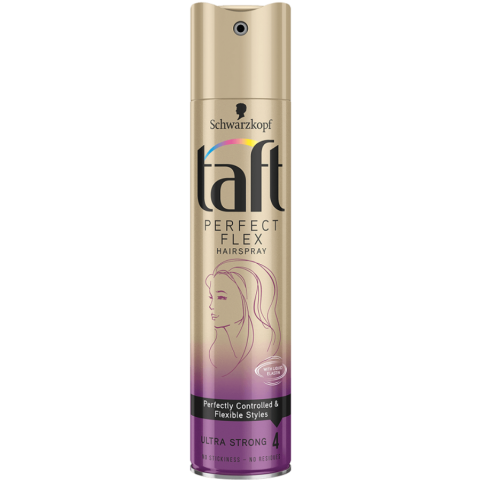 Megújult Taft továbbfejlesztett vegán formulákkal. Alkoss hosszan tartó frizurákat a Taft Perfect Flex hajlakkal. Segít megvédeni a hajat a kiszáradástól anélkül, hogy elnehezítené azt, a tökéletesen kontrollált és rugalmas frizuráért, mely nem ragad.