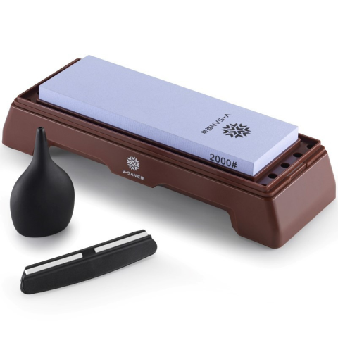 állvány + élszögtartó + vízcseppentő Prémium minőségű alumínium-oxid (korund) alapanyagból gyártott kétoldalú, kombinált fenőkő, kések és vágószerszámok minőségi élezéséhez, élkarbantartásához. Szemcseméret: #2000/6000 - Finom/Ultra finom Élezőfelül