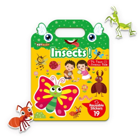 A kiadvány 19 matricát és szétnyitható hátteret tartalmaz, amelyeken különféle rovarok sziluettjei és azok angol megnevezései találhatók. A gyerekeknek az a feladatuk, hogy párosítsák a megfelelő gumimatricát az egyes bogár árnyékával. Praktikus táska formájú kialakítás a könnyed hordozhatóságért.