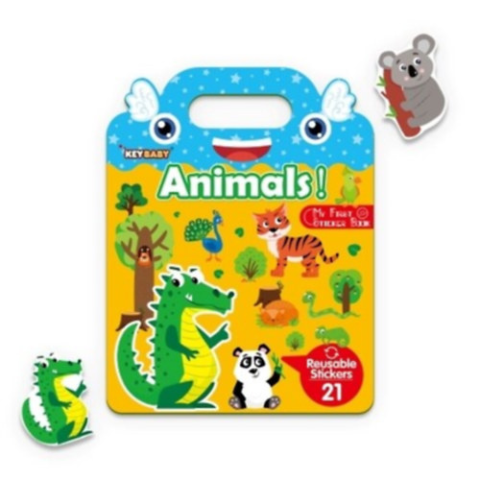 A kiadvány 21 matricát és szétnyitható hátteret tartalmaz, amelyeken különféle állatok sziluettjei és azok angol megnevezései találhatók. A gyerekeknek az a feladatuk, hogy párosítsák a megfelelő gumimatricát az egyes állatok árnyékával. Praktikus táska formájú kialakítás a könnyed hordozhatóságért.