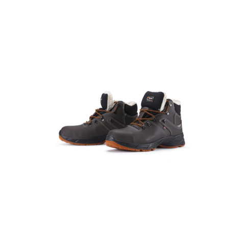 Styler Winter könnyű, vízlepergető bőr téli munkavédelmi bakancs, természetes és szintetikus szőrme bélés, barna, jólláthatósági betét, olaj- és kopásálló, antisztatikus, SRC csúszásmentes kétrétegű PU talp, kompozit kapli (12) és fémmentes MaxFlex kevlár talplemezSzín: barna