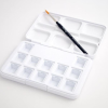 Üres tárolódoboz szilkés akvarellfestékhez + ecset