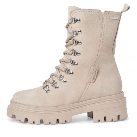 1 kép Tamaris bézs színű bélelt bakancs fűzővel