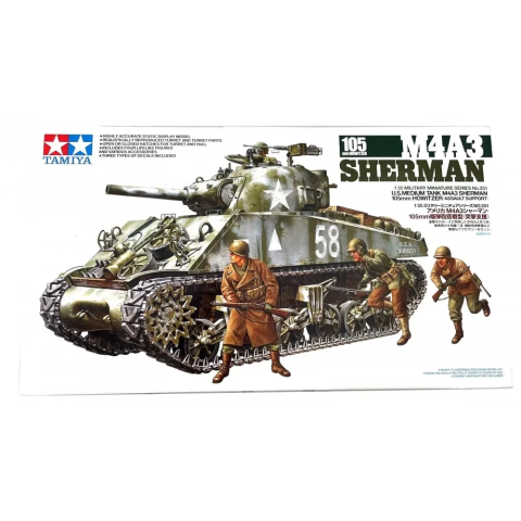 1 kép tamiya 1/35 M4A3 Sherman tank modell 105mm Howitzer löveggel és figurákkal