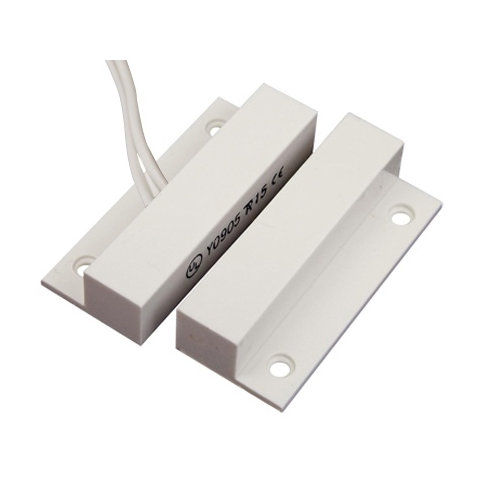 Ajtóra szerelhető nyitásérzékelő fehér színben A nyitásérzékelő tulajdonságai Felületszerelhető Két csavarral és/vagy hátoldali tapadószalaggal rögzíthető Vezeték középen kivezetve NC kontaktust adó Reed-relé Fehér és barna színben Kontaktus terhelhetősége: 30 Vdc, 0,5 A Vezetékhossz: 50 cm Méret: 34mm x 14mm x 7mm Alkalmazható fa és kisebb nagyságú fémajtóknál