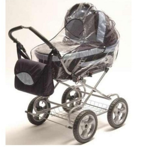 Esővédő három funkciós babakocsira - víztiszta PVC fólia - natur színű szalaggal varrva Esővédő mérete: - szélesség: 42 cm - hosszúság: 85 cm - magasság: 60 cm
