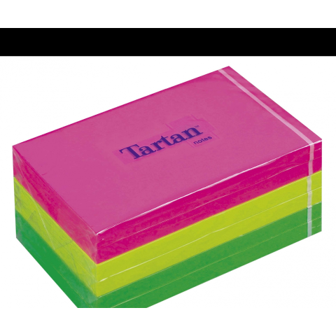 TARTAN Öntapadó jegyzettömb, 127x76 mm, 100 lap, 6 tömb/cs, , vegyes neon színek