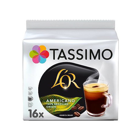 Kávékapszula Tassimo kompatibilis - lungo, 100% arabica, dark intenzitás, származási helye Brazília, műanyag anyagú kapszula, 16 kapszulát tartalmaz TASSIMO L´OR Brazil Americano16 kapslíKávové kapsle TASSIMO L´OR Brazil Americano ukrývají 100% Arabicu původem z Brazílie. Káva vyniká jemností a vyvážeností. Nabízí bohatou, výraznou a aromatickou c
