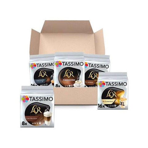 Kávékapszula Tassimo kompatibilis - caffè latte, cappuccino és espresso, kávékeverék, pörkölt tónusú, 64 kapszulát tartalmaz Szeretnéd otthonod kényelmében élvezni kedvenc kávédat? Ebben az esetben biztosan örülni fogsz a TASSIMO LOR VARIATION BOX 64 adag kávékapszulának, amellyel úgy készítheted el a kávét, ahogyan szerete
