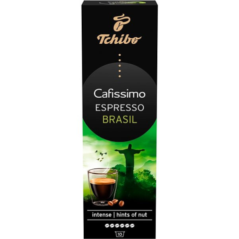 Kávékapszula Tchibo Cafissimo kompatibilis - espresso, 100% arabica, dark intenzitás, származási helye Brazília, 10 kapszulát tartalmaz A lenyűgöző brazil kávéA brazil lejtőkön lassan érlődő kávészemek sorai között készül a Beleza Brasil harmónikus íze. A napos lejtők kissé kesernyés ízt hoznak magukkal, magával ragadó, finom mog