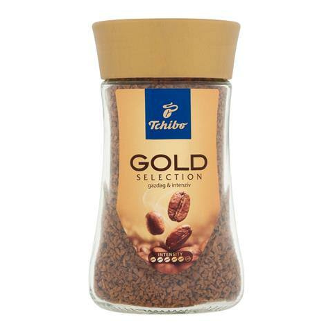 Instant kávé, 100 g, üveges, TCHIBO Gold Selection (KHK686) Kiváló minőségű instant kávé, amely kivételes, aranyló színét a gondosan válogatott kávészemek legjavának és a különleges prökölésnek köszönheti. Üvegben, védőgázas csomagolásban Gyártó/első