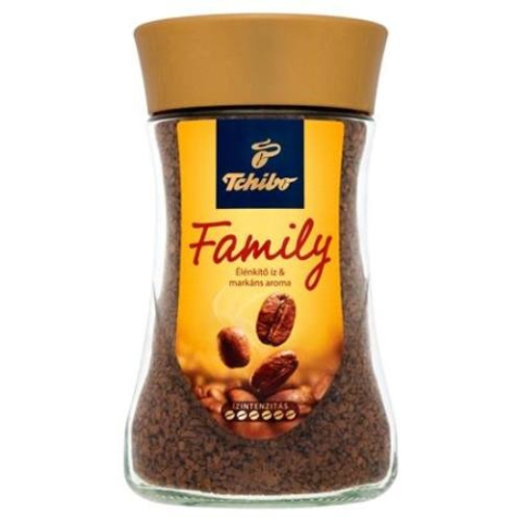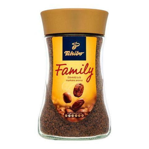 Instant kávé, 200 g, üveges, TCHIBO Family (KHK669) A Tchibo Family természetesen erőteljes kávébabból készül, hogy íze frissítő, aromája pedig erős legyen. Adagoljon 1-2 teáskanál instant kávét egy csészébe és öntsön rá forró, de nem forrásban lévő vi