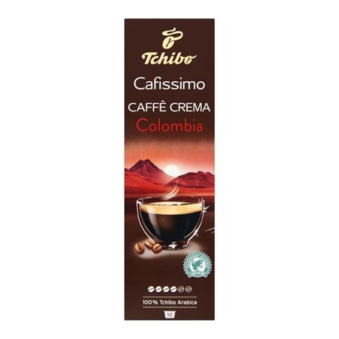Kávékapszula, 10 db, TCHIBO Cafissimo Caffé Crema Colombia. - /csom (10 db) A Colombia telt ízű caffe crema friss karakterrel. Az egyenletes trópusi éghajlatnak köszönhetően a kávécseresznyék egyedülállóan kíméletes érési folyamaton mennek keresztül, m