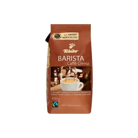 A Tchibo Barista Caffé Crema lágy, gyümölcsös jellegű, elegáns aromájú, kissé bogyós gyümölcsökre emlékeztető ízjegyekkel rendelkezik. Hagyományos dob pörköléssel pörkölt prémium kávé, a hagyományos eszpresszó pörköléshez képest kétszer hosszabban, de kíméletesen pörkölve, így az ízek és aromák maximálisan ki tudnak teljesedni. Az így nyert aromát és ízeket egyedi visszazárható aromavédő zárral láttuk el, hogy otthonában minél hosszabban élv