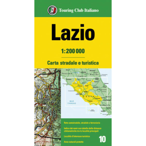 Lazio térkép 1:200 000 méretarányú turisztikai és autós régiótérképe olaszországi kiadótól. 2022-es kiadás.