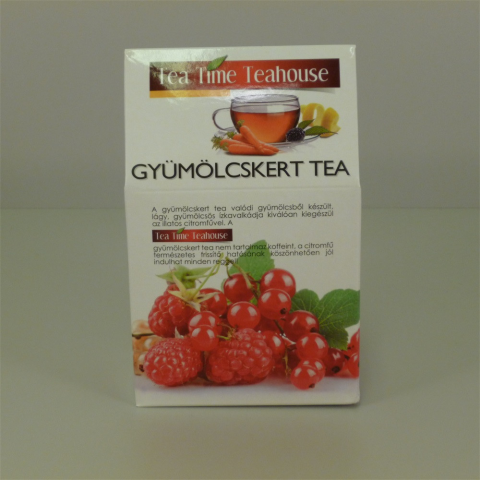 Tea Time gyümölcskert tea 100 g A Gyümölcskert Tea valódi gyümölcsből készült, lágy, gyümölcsös ízkavalkádja kiválóan kiegészül az illatos citromfűvel. A Tea Time Teahouse Gyümölcskert Tea nem tartalmaz koffeint, a citromfű természetes frissítő hatásán