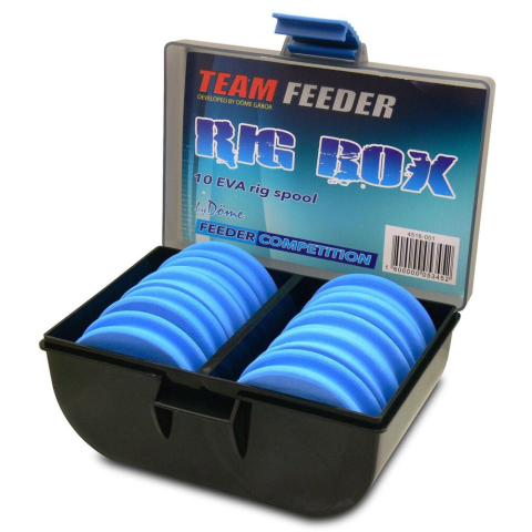 A nagyon tetszetős doboz 10 db EVA szivacsból készült dobot tartalmaz, melybe az első horgot beletűzve, majd az előke hurkába a következő horgot beleakasztva láncszerűen halmozhatjuk az előkötött horgainkat.