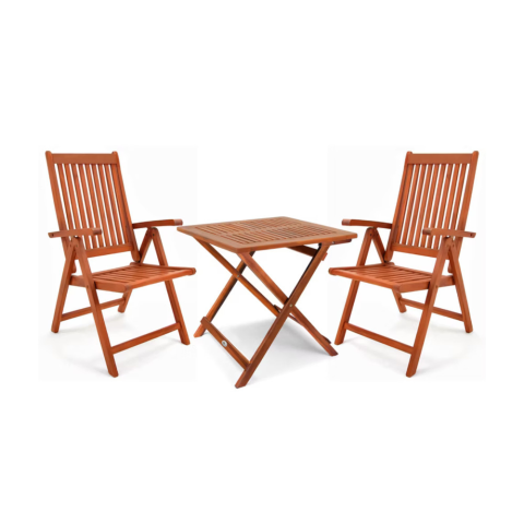 1 kép    Tech 3 részes kerti ülőgarnitúra eukaliptusz fából összecsukható, állítható ülőhelyzetű karfás székek