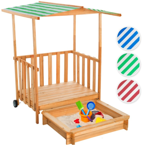 1 kép Tech Gyerek fa keretes homokozó verandával védtetővel napernyővel zöld színben