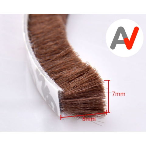 1 kép Tech Öntapadós ajtószigetelő kefe, szélfogó üvegajtó kefe barna 7x8 mm ajtókefe vitrin tömítés