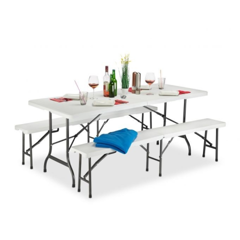 1 kép    Tech Összecsukható sörpad garnitúra 3-as készlet fehér színben