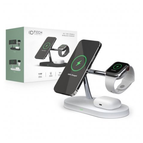 1 kép Tech-Protect A12 3in1 MagSage vezeték nélküli töltő Mobil / AirPods / Apple Watch, fehér