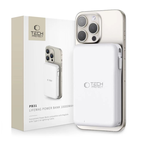 Tech-Protect PB31 MagSafe Power Bank beépített kábellel 10000mAh fehér