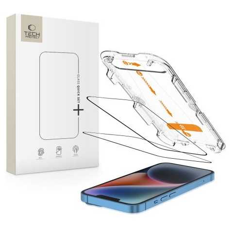 1 kép Tech-Protect Quick Set 2x üvegfólia iPhone 13 / 13 Pro / 14 / 16e, fekete