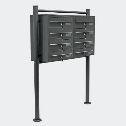 1 kép Tech Társasházi postaláda 8 darabos kültéri állványos csoportos antracit levélszekrény galvanizált acél