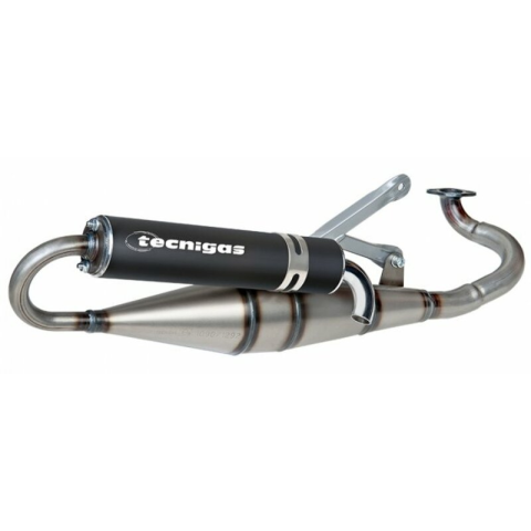 A Tecnigas versenyscooter kiváló teljesítményt és alacsony zajszintet kínáló tökéletes kombinációja. A termék acélból készült szerkezete a kúp-ellentétes kúp elvén alapul, melynek eredményeként maximális teljesítményt nyújt. A magas minőségű anodizált fekete alumíniumból készült hangtompító alacsony zajszintet biztosít, miközben a kézi készítésű design eleganciát kölcsönöz a terméknek. Az EC homologációk elérhetők az 97/24/EC irányelvnek megf