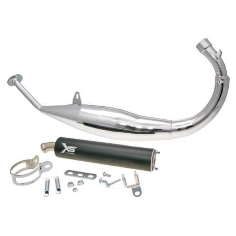A Tecnigas XS Chrome kipufogó az eredeti és 50-80cc sport hengerekhez készült vadonatúj sport kipufogó. Már alacsony fordulatszámokon is rendkívüli teljesítményt nyújt, és az alábbi tervezésnek köszönhetően különösen sportos megjelenéssel rendelkezik.A kr