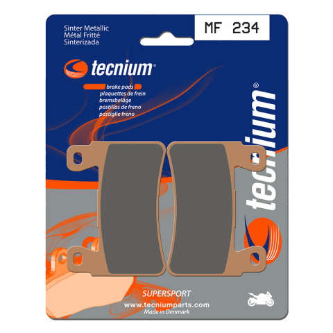 A TECNIUM kifejlesztett egy teljes körű, teljesítményes betéteket és cipőket kínáló termékpalettát minden disciplínához.Sinterelt betétek. Kiváló egyensúlyt nyújtanak az hatékonyság és a tartósság terén a sportteljesítményhez. Az előlap betétek MF (magas súrlódású) a hátsó betétekkel MR (közepes súrlódású) kombinálva kiváló egyensúlyt biztosítanak a fékezés terén. Dánia gyártotta.