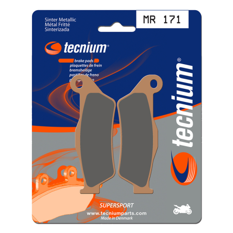 A TECNIUM kifejlesztett egy teljes körű, teljesítményes betéteket és cipőket kínáló termékpalettát minden disciplínához.Sinterelt betétek. Kiváló egyensúlyt nyújtanak az hatékonyság és a tartósság terén a sportteljesítményhez. Az előlap betétek MF (magas súrlódású) a hátsó betétekkel MR (közepes súrlódású) kombinálva kiváló egyensúlyt biztosítanak a fékezés terén. Dánia gyártotta.