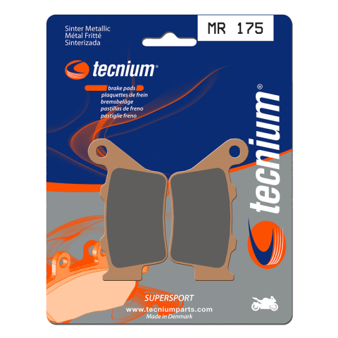 A TECNIUM kifejlesztett egy teljes körű, teljesítményes betéteket és cipőket kínáló termékpalettát minden disciplínához.Sinterelt betétek. Kiváló egyensúlyt nyújtanak az hatékonyság és a tartósság terén a sportteljesítményhez. Az előlap betétek MF (magas súrlódású) a hátsó betétekkel MR (közepes súrlódású) kombinálva kiváló egyensúlyt biztosítanak a fékezés terén. Dánia gyártotta.