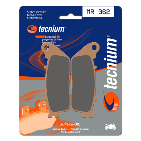 A TECNIUM kifejlesztett egy teljes körű, teljesítményes betéteket és cipőket kínáló termékpalettát minden disciplínához.Sinterelt betétek. Kiváló egyensúlyt nyújtanak az hatékonyság és a tartósság terén a sportteljesítményhez. Az előlap betétek MF (magas súrlódású) a hátsó betétekkel MR (közepes súrlódású) kombinálva kiváló egyensúlyt biztosítanak a fékezés terén. Dánia gyártotta.